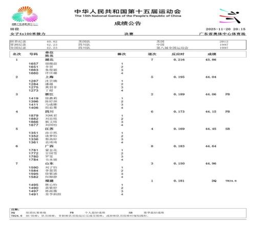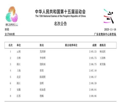 第十五届全运会女子径赛成绩及精彩镜头集锦